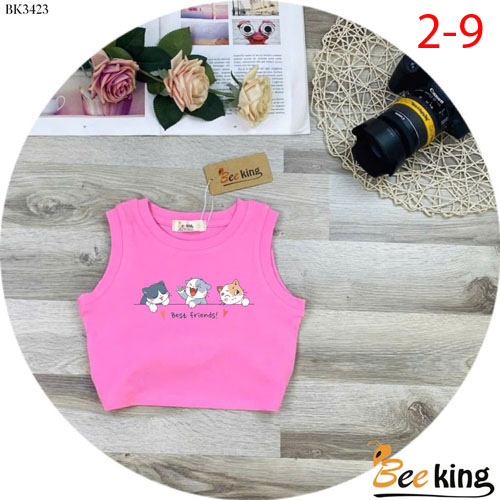 A465690 - Áo bé gái croptop mèo chất liệu borip loại 1_Size 2-9