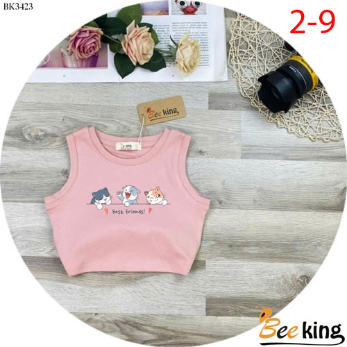 A465694 - Áo bé gái croptop mèo chất liệu borip loại 1_Size 2-9