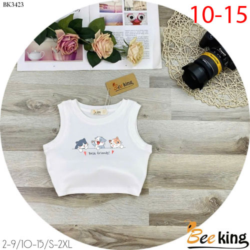 A465698 - Áo bé gái croptop mèo chất liệu borip loại 1_Size 10-15