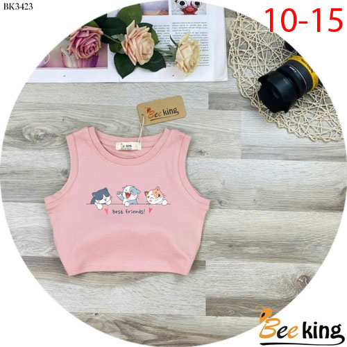 A465699 - Áo bé gái croptop mèo chất liệu borip loại 1_Size 10-15