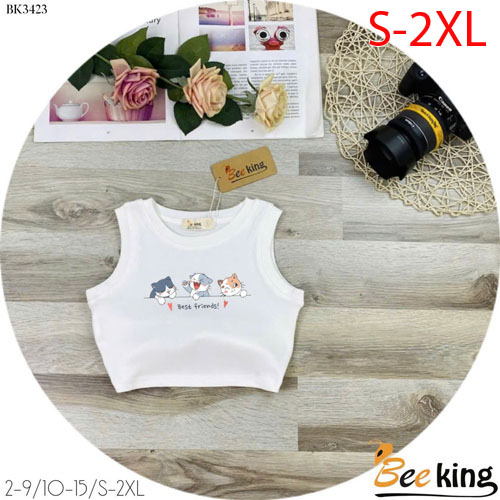 A465705 - Áo bé gái croptop mèo chất liệu borip loại 1_Size S-2XL