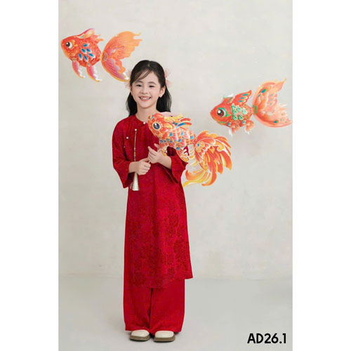 A465799 - (3/11)Áo dài lụa hoa nổi với phần cổ tròn cách tân thanh lịch điểm khuy ngọc trai và dải d