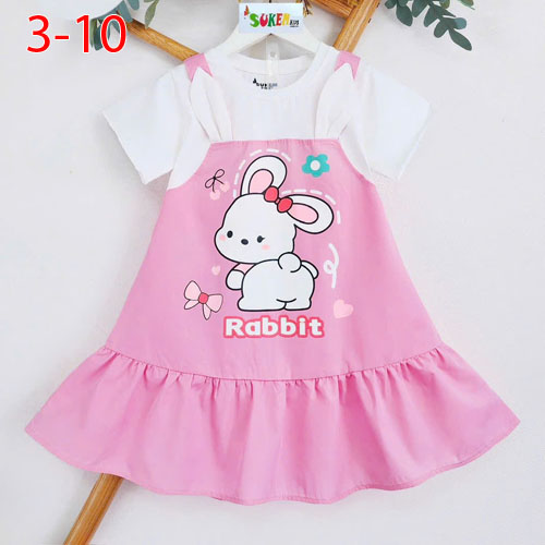 A465805 - Đầm may giả yếm đính tai Thỏ siêu cute áo phối vải thun coton tùng đuôi cá nhún bèo_Size 3