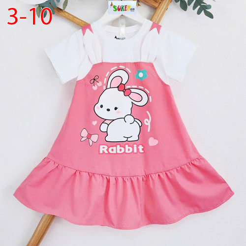 A465808 - Đầm may giả yếm đính tai Thỏ siêu cute áo phối vải thun coton tùng đuôi cá nhún bèo_Size 3
