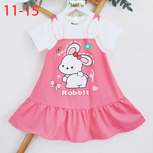 A465811 - Đầm may giả yếm đính tai Thỏ siêu cute áo phối vải thun coton tùng đuôi cá nhún bèo_Size 1