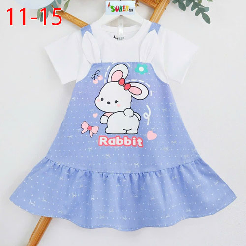 A465812 - Đầm may giả yếm đính tai Thỏ siêu cute áo phối vải thun coton tùng đuôi cá nhún bèo_Size 1