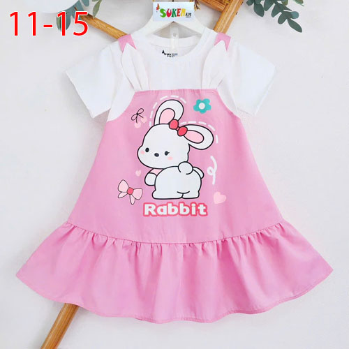 A465814 - Đầm may giả yếm đính tai Thỏ siêu cute áo phối vải thun coton tùng đuôi cá nhún bèo_Size 1
