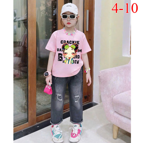 A466046 - Set jean siêu xinh cho bé áo chất thun borip in cô bé CRACKIE quần jean cotton mềm was rác