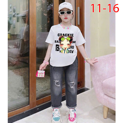 A466051 - Set jean siêu xinh cho bé áo chất thun borip in cô bé CRACKIE quần jean cotton mềm was rác