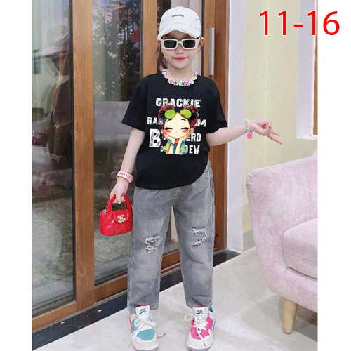 A466052 - Set jean siêu xinh cho bé áo chất thun borip in cô bé CRACKIE quần jean cotton mềm was rác