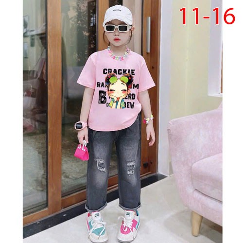 A466053 - Set jean siêu xinh cho bé áo chất thun borip in cô bé CRACKIE quần jean cotton mềm was rác