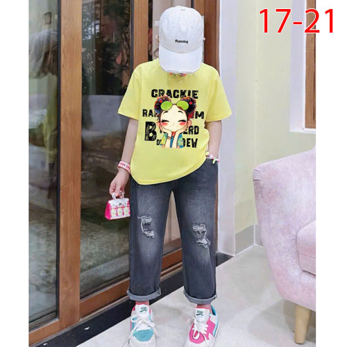 A466055 - Set jean siêu xinh cho bé áo chất thun borip in cô bé CRACKIE quần jean cotton mềm was rác