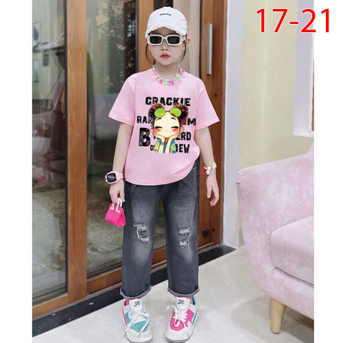 A466056 - Set jean siêu xinh cho bé áo chất thun borip in cô bé CRACKIE quần jean cotton mềm was rác