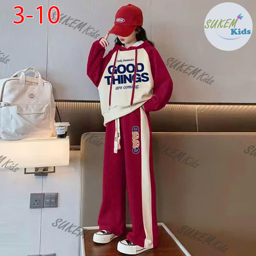 A466095 - (2/11)Bộ thun Hoodie dài tay cho bé gái áo may nón rút dây tay phối ráp lăng in GOOD THING