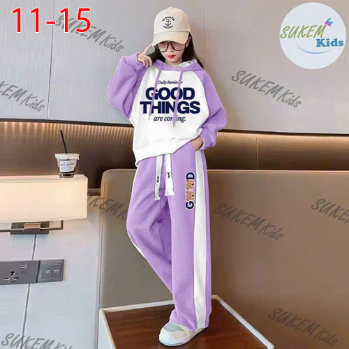 A466101 - (2/11)Bộ thun Hoodie dài tay cho bé gái áo may nón rút dây tay phối ráp lăng in GOOD THING