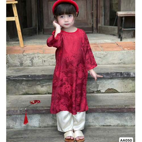 A466119 - Áo dài lụa Chiết Giang cao cấp dáng suông thoải mái, đính nút nổi bật cùng quần lụa_Size 1