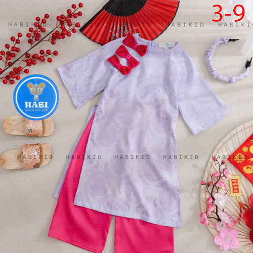 A466314 - (7/11)Set Áo Dài TếT Bính Ngọ áo được may trên chất liệu Gấm nơ nhung HandMade quần chất s