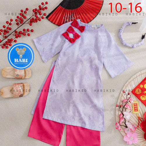 A466321 - (7/11)Set Áo Dài TếT Bính Ngọ áo được may trên chất liệu Gấm nơ nhung HandMade quần chất s