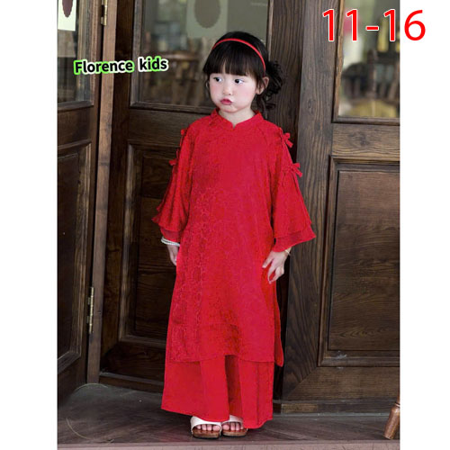 A467225 - (7/11)Set áo dài truyền thống tay áo cách điệu đính nơ hoạ tiết hoa văn cực xinh chất liệu