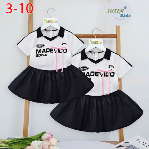 A467230- Sét bí thể thao áo ngắn tay cổ trụ in thể thể thao đính nơ ruy băng thun coton 4c chân váy