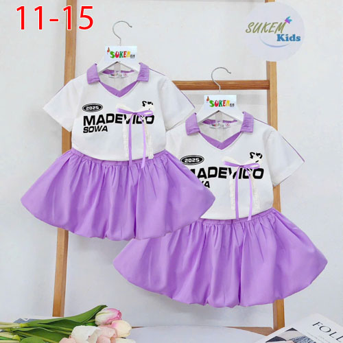 A467233 - Sét bí thể thao áo ngắn tay cổ trụ in thể thể thao đính nơ ruy băng thun coton 4c chân váy