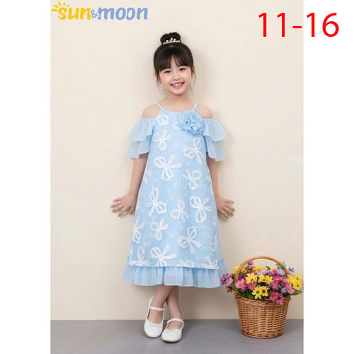 A467343 - Áo dài vol hoa cổ yếm tay 2 tầng bông quấn_Size 11-16