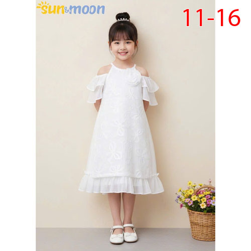 A467344 - Áo dài vol hoa cổ yếm tay 2 tầng bông quấn_Size 11-16