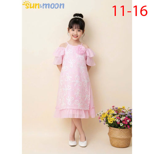 A467345 - Áo dài vol hoa cổ yếm tay 2 tầng bông quấn_Size 11-16