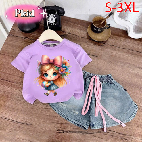 A467395 - Set bé gái áo chất thun cotton hình in sắc sảo quần lưng thun được may chất rin cotton in