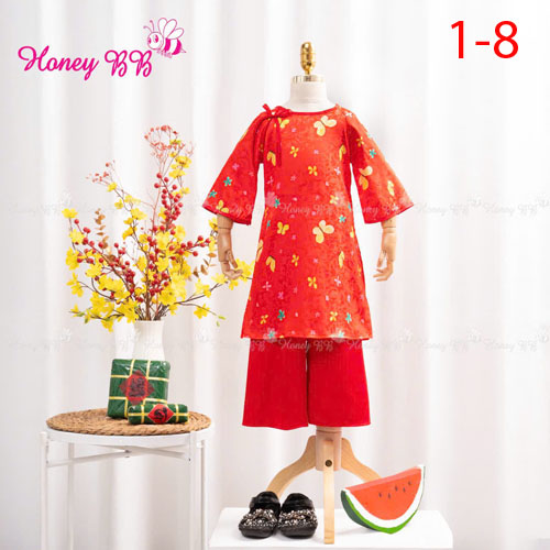 A467811 - Set áo dài áo gấm lụa mềm mại hình in hoa văn nguyên cây quần Latinh loại 1_Size 1-8