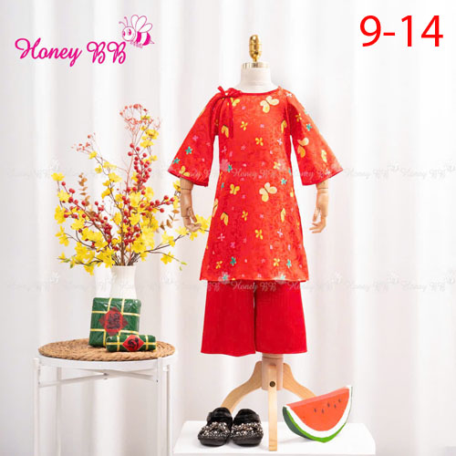 A467816 - Set áo dài áo gấm lụa mềm mại hình in hoa văn nguyên cây quần Latinh loại 1_Size 9-14
