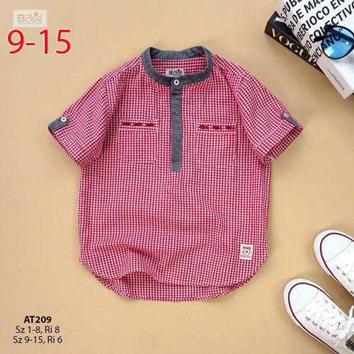 A467855 - Áo sơ mi cổ trụ caro - sô cotton tay ngắn, thiết kế cách điệu với 2 túi_Size 9-15