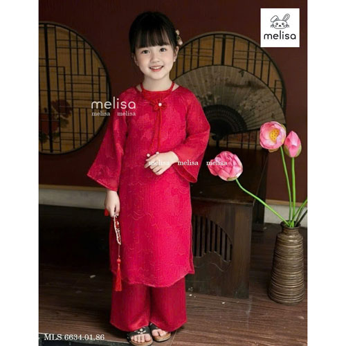A468296 - (10/11)Áo dài kiểu đẹp mê 2 tà áo dài và yếm chất liệu áo tơ ép hoạ tiết lá_Size 2/3Y-11/1