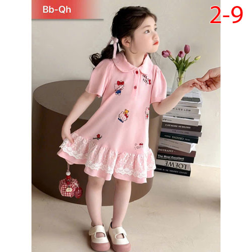 A468601 - Đầm chất thun coton co dãn 4 chiều phối ren tạo điểm nhấn_Size 2-9