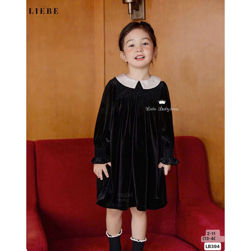 A468684 - Đầm nhung cổ sen tiểu thư siêu yêu cổ sen trắng phối nền nhung_Size 2-11