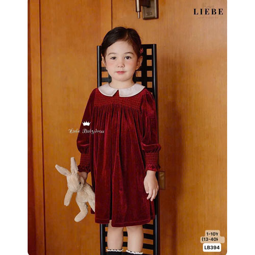 A468685 - Đầm nhung cổ sen tiểu thư siêu yêu cổ sen trắng phối nền nhung_Size 2-11
