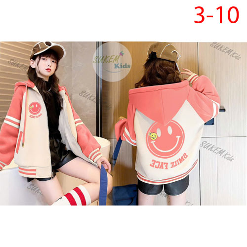A468782 - Áo khoác cắt phối tay ráp lăng chạy dây viền thể thao đắp Logo mặt cười vải da cá c