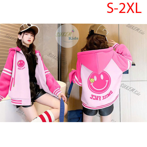 A468795 - Áo khoác cắt phối tay ráp lăng chạy dây viền thể thao đắp Logo mặt cười vải da cá c