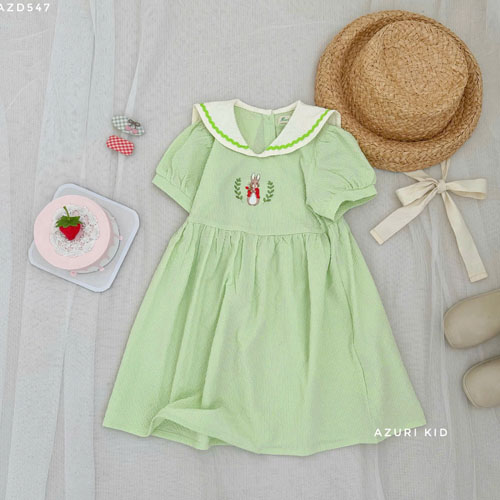 A469449 - Đầm cổ thuỷ thủ xinh xắn RABBIT, cài nút thân sau vải bông xốp có co dãn nhẹ_Size 2-10