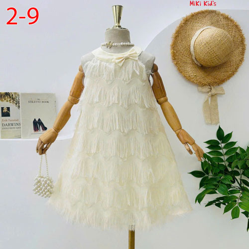A469494 - Đầm cổ yếm xinh xẻo vải tơ tua rua nhập QC tơ lông vũ cao cấp_Size 2-9