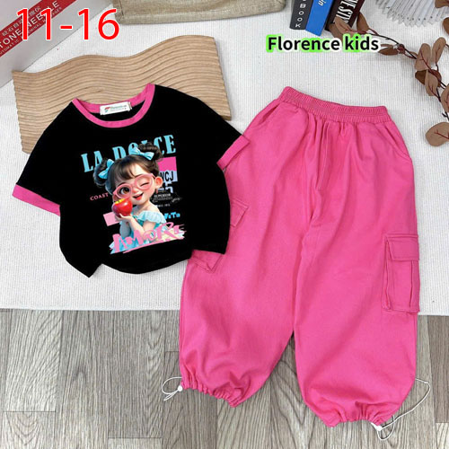 A470389 - Set bé gái áo chất thun coton co dãn 4 chiều in cô bé quần kaki túi hộp sang chảnh_Size 11