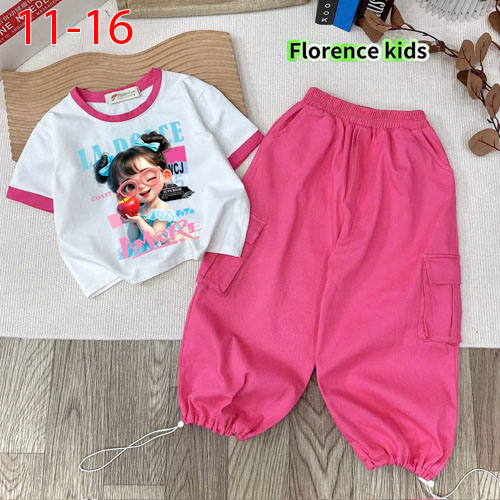 A470391 - Set bé gái áo chất thun coton co dãn 4 chiều in cô bé quần kaki túi hộp sang chảnh_Size 11