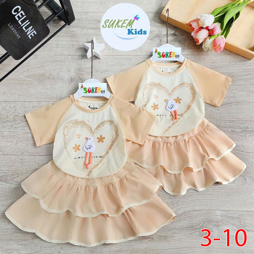 A470399 - Sét váy áo may tay ráp lăng phối màu đính phụ kiện chân váy may sóng 2 tầng_Size 3-10