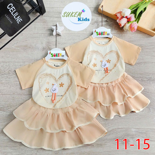 A470406 - Sét váy áo may tay ráp lăng phối màu đính phụ kiện chân váy may sóng 2 tầng_Size 11-15