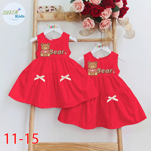 A470717 - Đầm may tùng xòe cắt may lượn sóng đính nơ xinh vải kate thô thái coton_Size 11-15