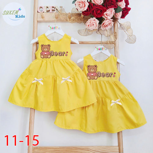 A470718 - Đầm may tùng xòe cắt may lượn sóng đính nơ xinh vải kate thô thái coton_Size 11-15