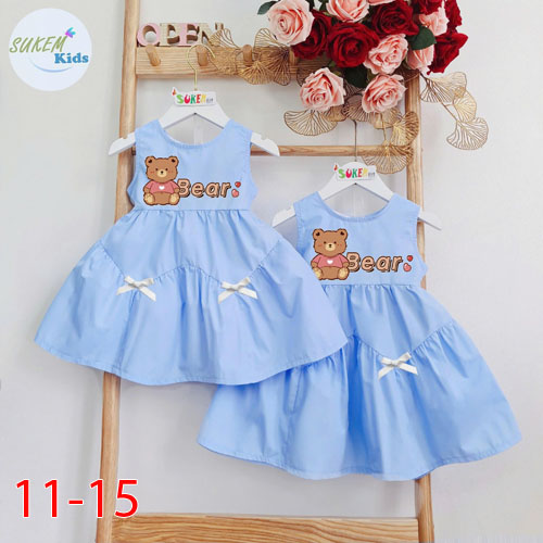 A470722 - Đầm may tùng xòe cắt may lượn sóng đính nơ xinh vải kate thô thái coton_Size 11-15