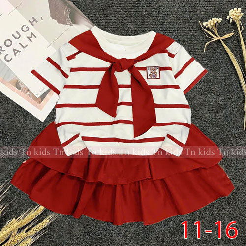 A470919 - Set váy dúng 2 tầng bèo áo thun in sọc có quần chip đùi áo thun, váy kate thô_Size 11-16