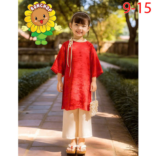 A471246 - Áo dài Tết cho các thiên thần nhỏ gấm lụa cao cấp hình Hoa mai Hồng Phúc An Nhiên_Size 9-1