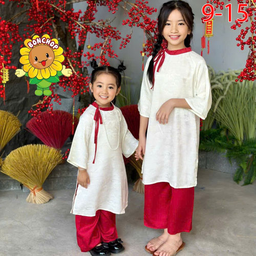 A471247 - Áo dài Tết cho các thiên thần nhỏ gấm lụa cao cấp hình Hoa mai Hồng Phúc An Nhiên_Size 9-1